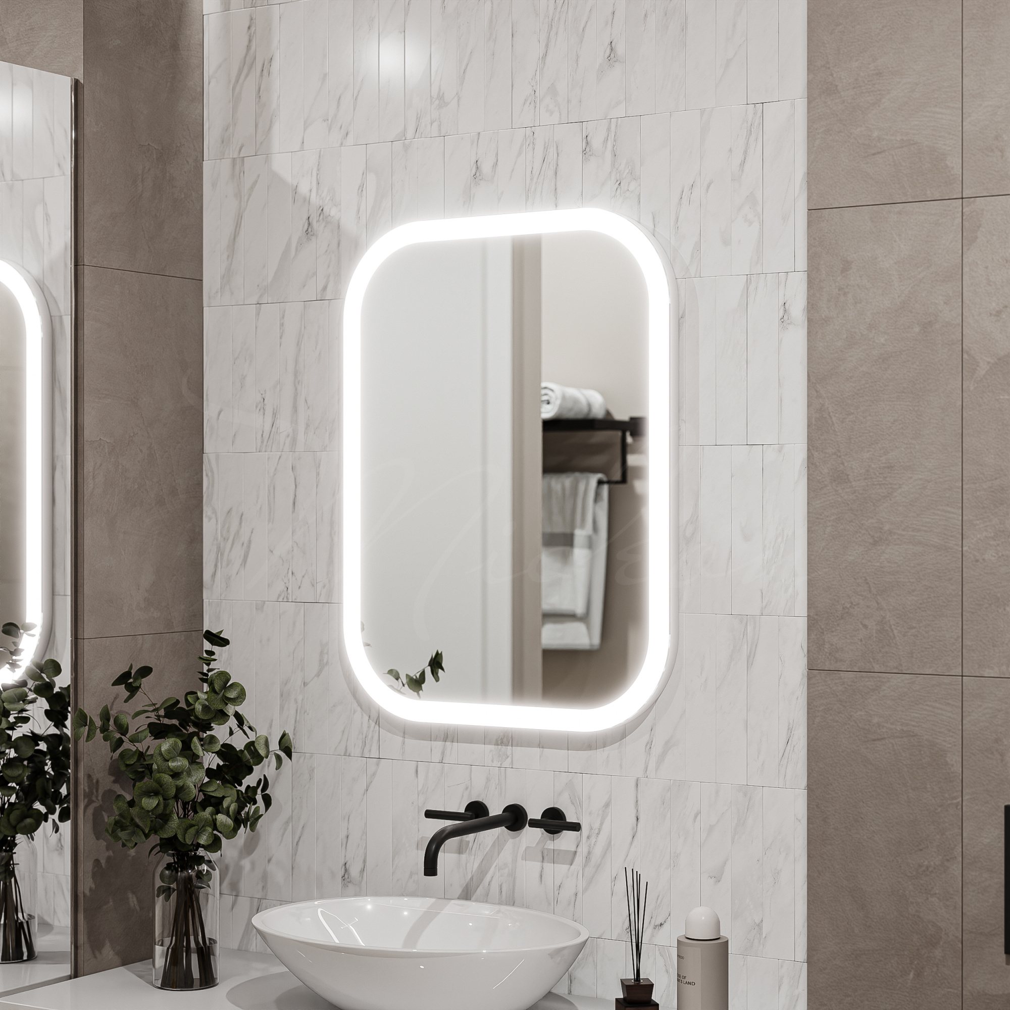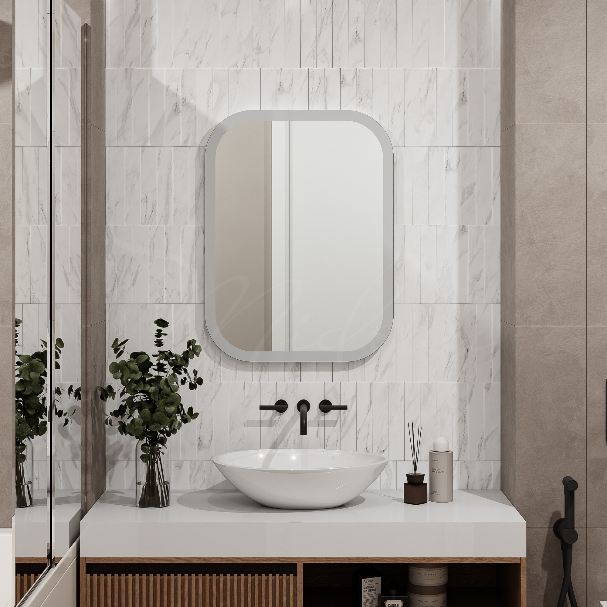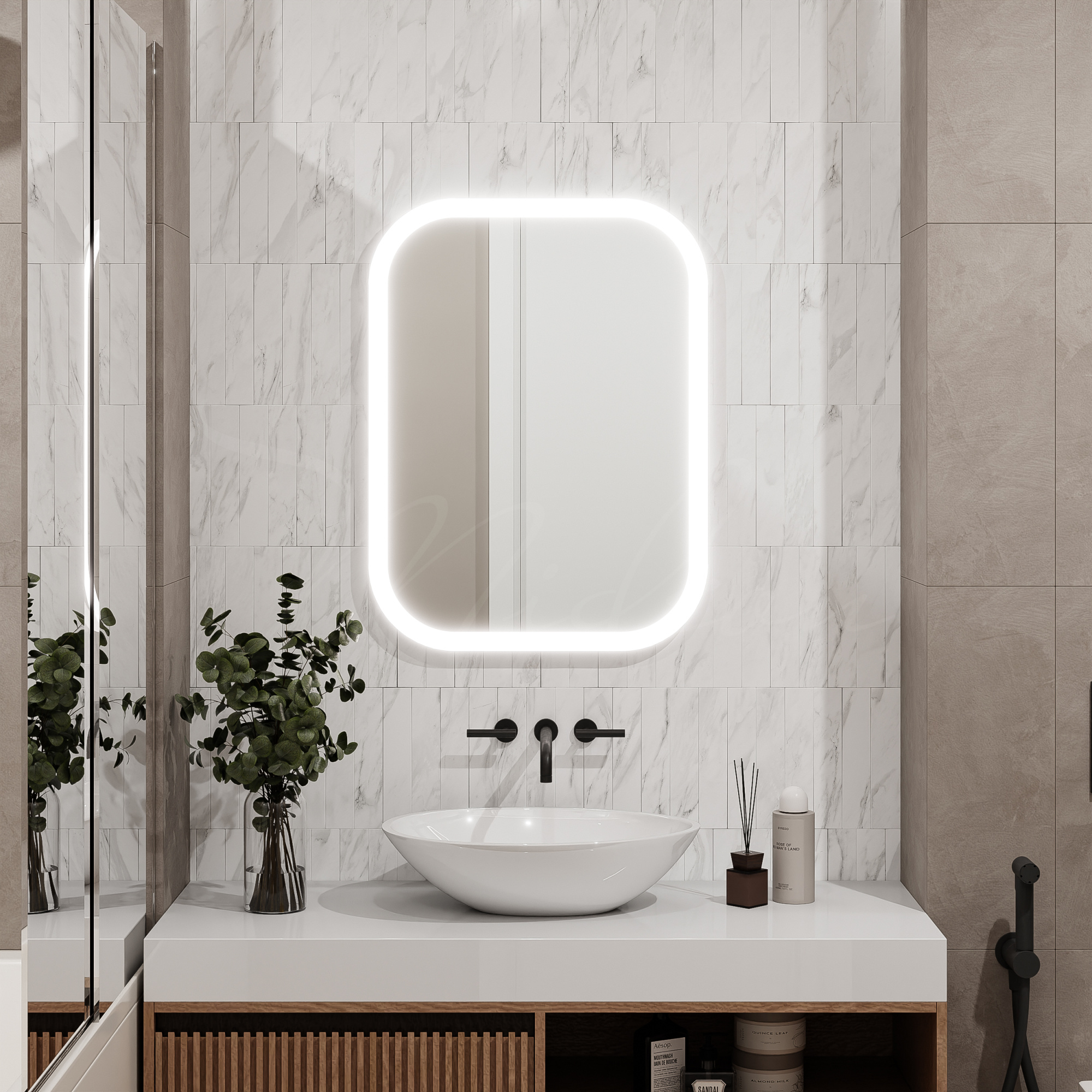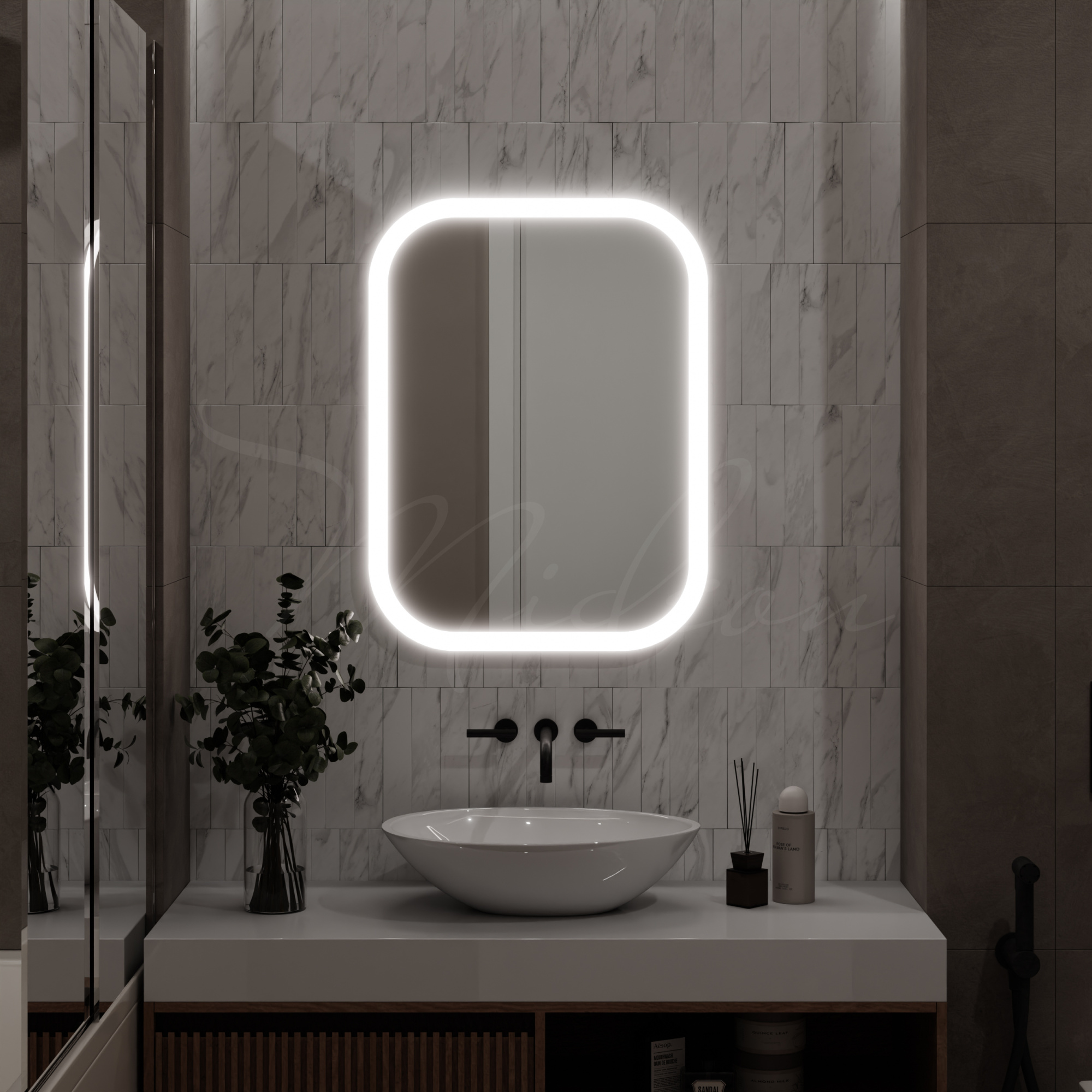 - Монтаж зеркала с подсветкой стоит 30% от стоимости зеркала, но не менее 3200 руб.