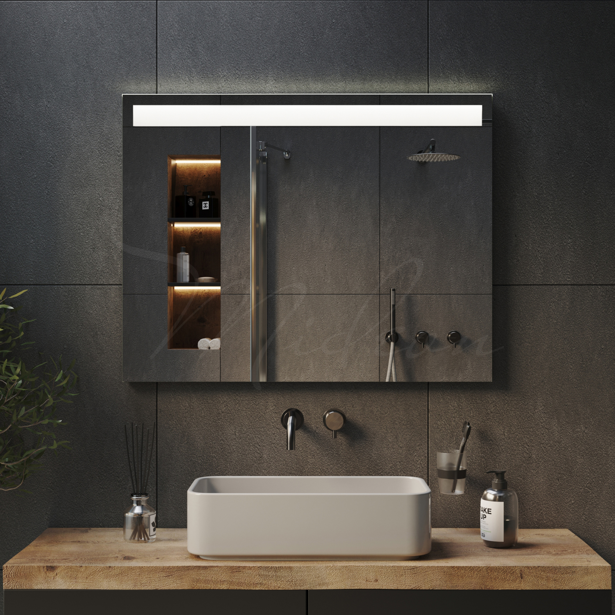 Все наши зеркала с закрытой подсветкой имеют толщину всего 24 мм благодаря применению современной LED (светодиодной) подсветки, премиальных комплектующих и собственным производственным наработкам.
