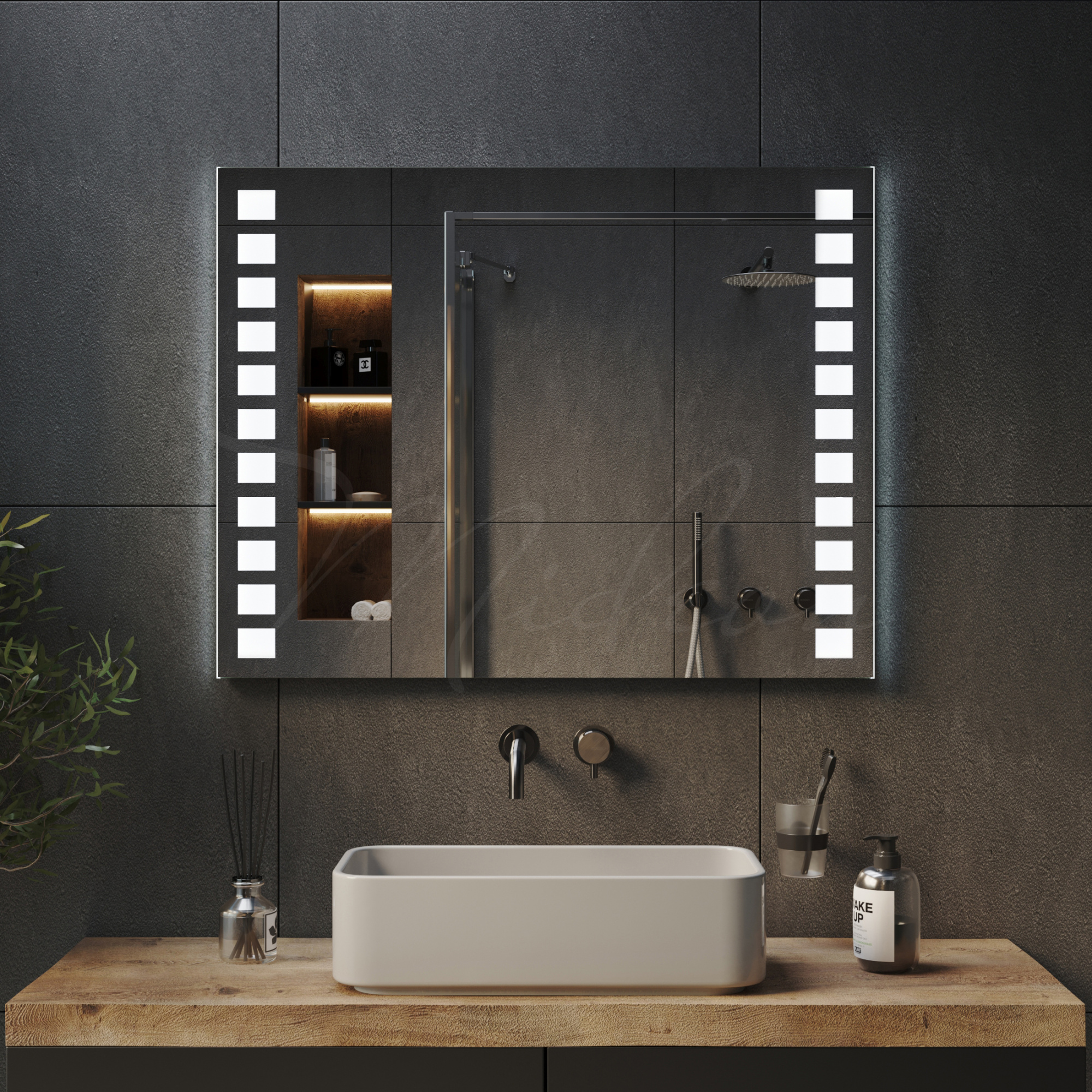 По умолчанию, зеркало с подсветкой Melis не оснащается выключателем, так как в подавляющем большинстве случаев при ремонте его выводят на стену отдельной клавишей. Если у вас нет отдельной клавиши включения, то можете выбрать один из наиболее подходящих вам вариантов дополнительного выключателя в опциях к зеркалу.